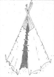 Plano de un tee-pee (vistas frontal,